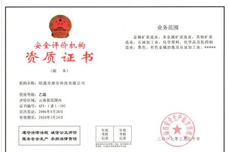 2003年11月10日,昭通市鼎安科技有限公司成立,初始主要從事第三方安全工程技術(shù)服務(wù),經(jīng)多年運(yùn)營,發(fā)展為多專業(yè)綜合科技平臺(tái),為社會(huì)提供多種專業(yè)技術(shù)服務(wù)工作。 現(xiàn)公司注冊(cè)資金為1200萬元,公司法定代表人:毛衛(wèi)旭。公司主要業(yè)務(wù):安全評(píng)價(jià)、安全標(biāo)準(zhǔn)化評(píng)審、安全工程技術(shù)服務(wù);環(huán)境監(jiān)測(cè)、職業(yè)衛(wèi)生檢測(cè)、檢驗(yàn);法律訴訟及非訴訟服務(wù);司法鑒定、固定資產(chǎn)投資項(xiàng)目節(jié)能服務(wù);工程咨詢;工程測(cè)量測(cè)繪;安全教育培訓(xùn)等。是安全生產(chǎn)服務(wù)、安全教育培訓(xùn)機(jī)構(gòu),也是環(huán)境監(jiān)測(cè)和職業(yè)衛(wèi)生服務(wù)機(jī)構(gòu),同時(shí)也是綜合的檢測(cè)檢驗(yàn)、綜合科技平臺(tái)服務(wù)機(jī)構(gòu)。多年來為公、檢、法、司、軍、警、海關(guān)、仲裁、安監(jiān)、工礦商貿(mào)企業(yè)、社會(huì)團(tuán)體及個(gè)人提供多專業(yè)技術(shù)服務(wù)。